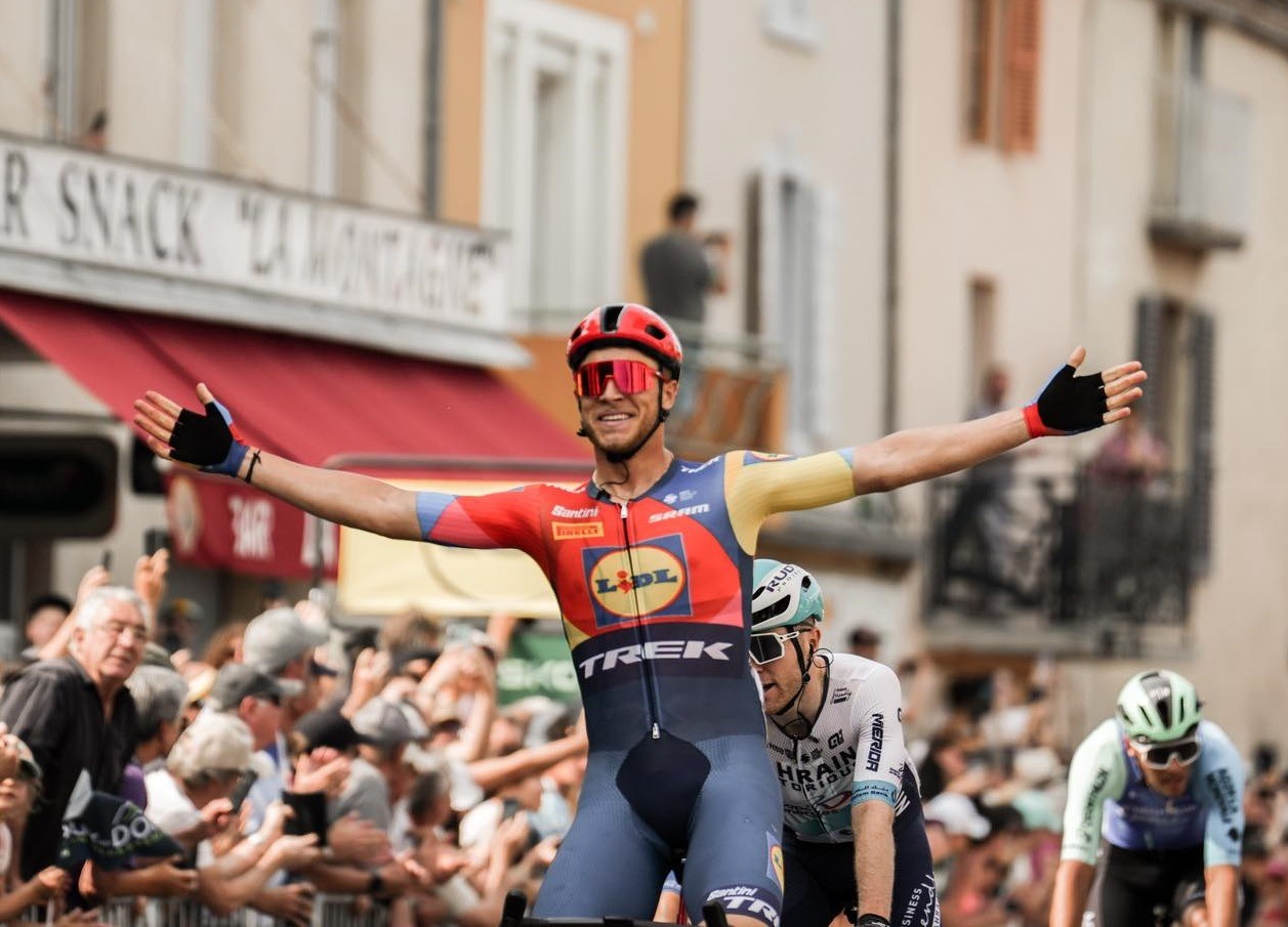 De quedarse en una pequeña cota lejos de meta a ganar la etapa y vestirse de líder. Así cambió en apenas una hora la segunda etapa del Critérium del Dauphiné para Jonathan Milan. El favoritísimo de cara a las llegadas al sprint en una carrera sin muchos velocistas puros participantes, el italiano se apoyó en sus compañeros de equipo para conseguir la victoria en Issoire. Cuando se descolgó en la Côte de Chateau de Buron, los corredores del Lidl-Trek le esperaron para ayudarle a regresar al pelotón. Y cuando la carrera se acercó a su desenlace, formaron un tren de lanzamiento impecable, que le situó en la mejor posición para hacerse con el triunfo.