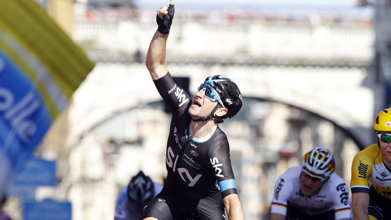 Había estado cerca en sus dos anteriores participaciones en el Giro de Italia vestido de verde Cannondale, pero le faltaba rematar. Elia Viviani (7 de febrero de 1989, Oppeano, Italia) por fin ya tiene su etapa en la prueba más prestigiosa de su país -y primera en una gran vuelta- y en la que todo profesional transalpino y velocista quiere figurar. A sus 26 años recién cumplidos y en su quinta campaña como profesional Viviani tiene una espina menos en su epidermis. Y fue una llegada precisa y preciosa en la ligera rampa de la accidentada Génova. Pero el corredor del Sky supo medir y calibrar perfectamente sus fuerzas y, sobre todo, las de sus oponentes finales. Primero el máximo favorito André Greipel, que se hinchó de ácido láctico a 200 metros y después las de Moreno Hofland, el holandés de nombre por Argentin que estrenó al Lotto NL en Yorkshire. Viviani se soldó a su neumático y le superó con una enorme aceleración. Un sprint de especialista en el que Michael Matthews fue séptimo y releva a su compañero Simon Gerrans como maglia rosa de líder.