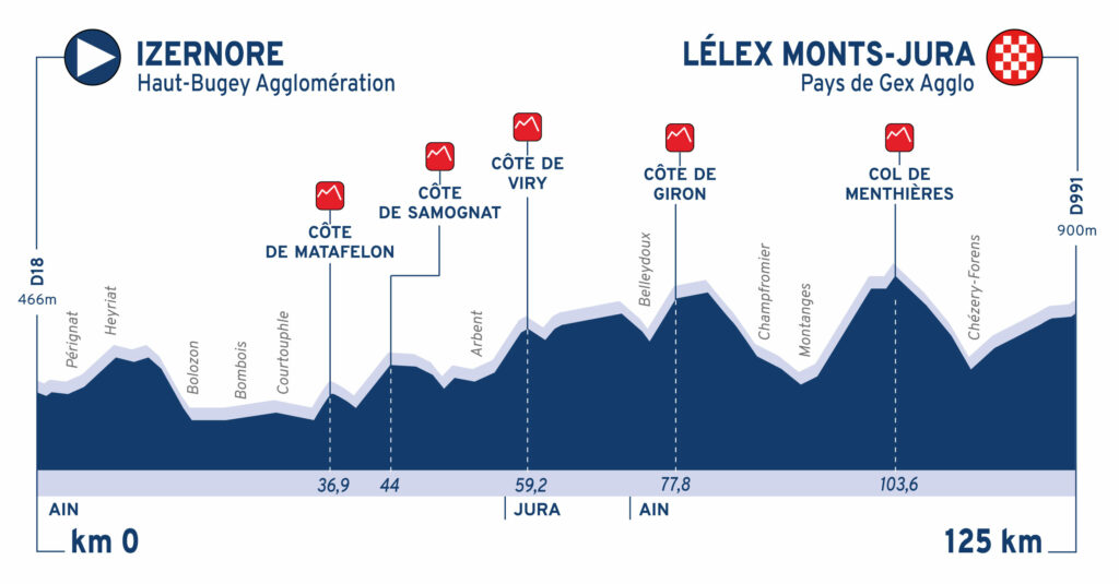 La intensa jornada arrancó con la tempranera fuga de Otto Vergaerde (Roubaix) y Dylan Kowalski (Alpecin), que alcanzaron tres minutos de renta pero no lograron mantener su proeza ni hasta el ecuador de la etapa. Los ataques se sucedieron sin que nadie lograra consolidar una escapada. Tampoco lo consiguieron Delacroix (Intermarché), Schonberger (B&B) y Castellarnau (Francia) en las rampas de la tercera de las cuatro cotas puntuables, el Col d’Ordonnaz, donde Álvaro Hodeg, ya se vio en problemas.