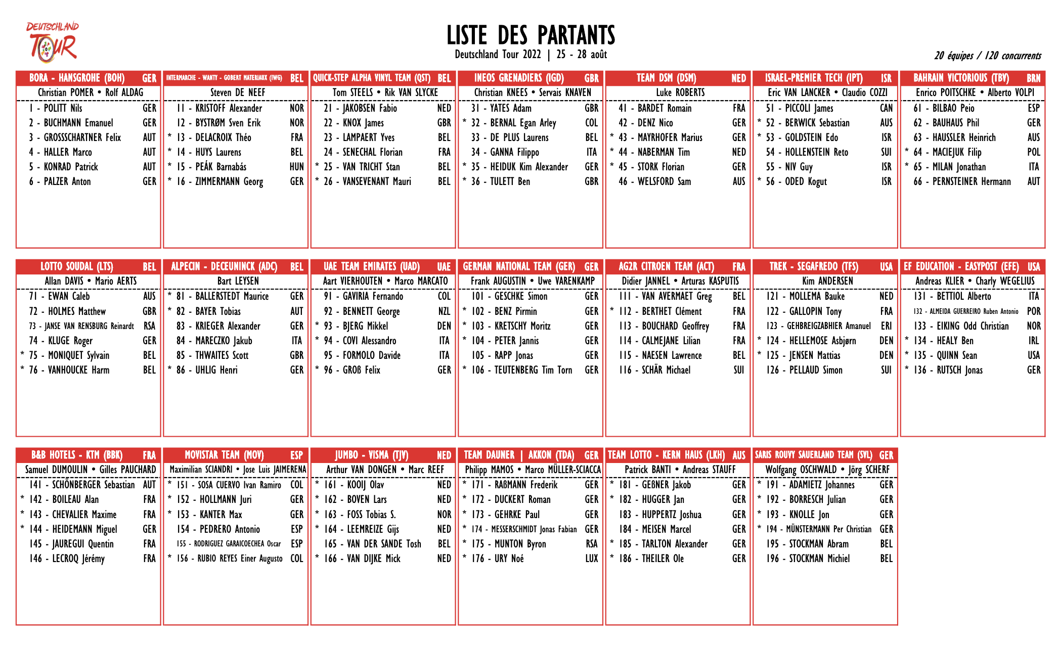 | 73 | ![]() | KRIEGER Alexander | Alpecin-Deceuninck | + 03:06 | |
