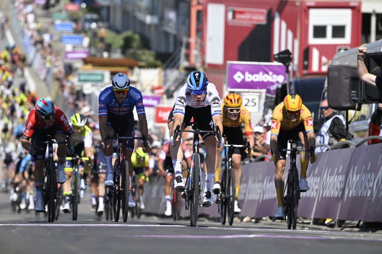 A Fabio Jakobsen le puedes ganar un día al esprint, pero más raro sería verle perder en una llegada masiva por segundo día consecutivo. El neerlandés superó a Mathieu van der Poel en un final hacia arriba en sus últimos 200 metros, pero completamente llano en su terreno previo. A pesar de terminar 2º, el corredor de Alpecin no se vistió de líder a pesar de las bonificaciones obtenidas en los sprints intermedios y en la propia línea de meta. La prenda fue a parar al mismo Jakobsen que se encuentra empatado a tiempo en la general con Mathieu. Precisamente su equipo y Soudal fueron los grandes protagonistas del día provocando los abanicos y dotando a la carrera de una gran velocidad.