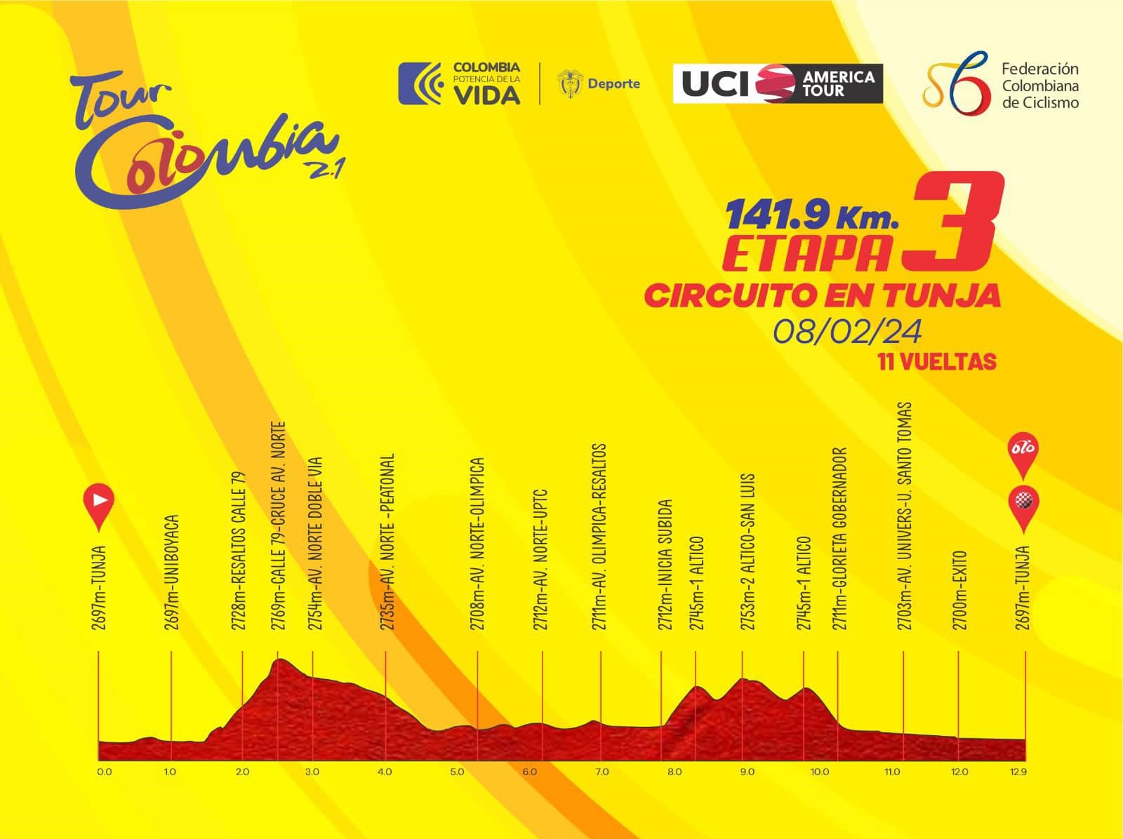 3ª: Jueves 8 febrero. Tunja (15:30)-Tunja, 12.5 kilómetros (9 vueltas)