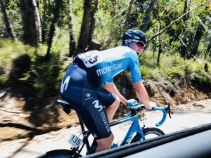 Jaime Castrillo brindó la primera alegría de la semana australiana a Movistar. El neoprofesional aragonés se metió en una fuga de cuatro hombres formada tras el banderazo de salida y reducida después a tres, con Clarke (EFD) y Bowden (AUS) acompañando al campeón de España contrarreloj sub-23 con una diferencia máxima de casi siete minutos. Bajo un asfixiante calor, con temperaturas cercanas a los 40ºC, Castrillo decidió proseguir su camino en solitario tras uno de los sprints intermedios y completó los últimos cincuenta kilómetros de su aventura -fue cazado a 13 de meta- por delante del pelotón sin ayuda. El oscense fue reconocido en el podio del día como más combativo, como informa su equipo.