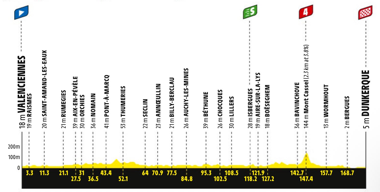 3ª: Lunes 7 julio. Valenciennes (13:25)-Dunkerque (17:30), 178 km