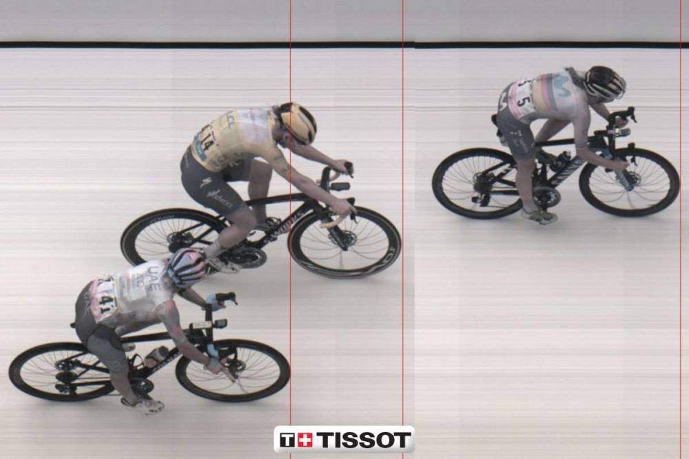 En un final caótico preñado de caídas por la lluvia, las curvas, elementos urbanos y asfalto sucio, Liane Lippert sacó la mejor tajada al superar por velocidad a la favorita y líder, la belga Lotte Kopecky, perfectamente lanzada por su compañera del SD Worx, Demi Vollering, pero con su rueda trasera pinchada. Pero la campeona alemana del Movistar fue más lista, aprovechó el rebufo para saltar en el momento justo y firmar su séptima victoria profesional y segunda de 2023 tras revalidar el oro de fondo en carretera de su país. La italiana Silvia Persico (UAE) completó el podio parcial y Ane Santesteban, 12ª, fue la mejor de las españolas.