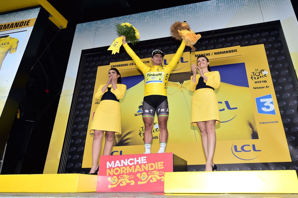 Radiante e inmaculado sobre fondo blanco hacía su aparición en el village de Saint-Lô el arcoíris que desde el pasado mes de octubre luce sobre el pecho y sobre sus hiperbólicas pelotas Peter Sagan (Tinkoff). El eslovaco partía como uno de los grandes favoritos de cara al triunfo en la cima de un tercera categoría que, en realidad, se asemejaba bastante más a una de las duras colinas de Flandes que a un puntuable de todo un Tour de Francia. Pero la Grande Boucle no ha hecho más que comenzar y los intereses de aquellos que pagan por hacer aparecer su nombre impreso sobre el maillot a lunares son los que son, por lo que era necesario repartir un puñado de puntos más allá de los altos de cuarta categoría que habíamos ido ascendiendo hasta llegar a Chebourg-en-Contentin.