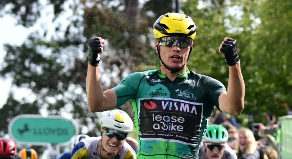 El sprinter del Visma, Olav Kooij, ha logrado su segunda victoria en otras tantas etapas en el Tour de Gran Bretaña. En una jornada relativamente controlada por el pelotón, todo se ha decidido en los metros finales y ahí ha lucido músculo el neerlandés, que ya se ha convertido en uno de los mejores velocistas del planeta, algo que viene demostrando en los últimos tiempos.