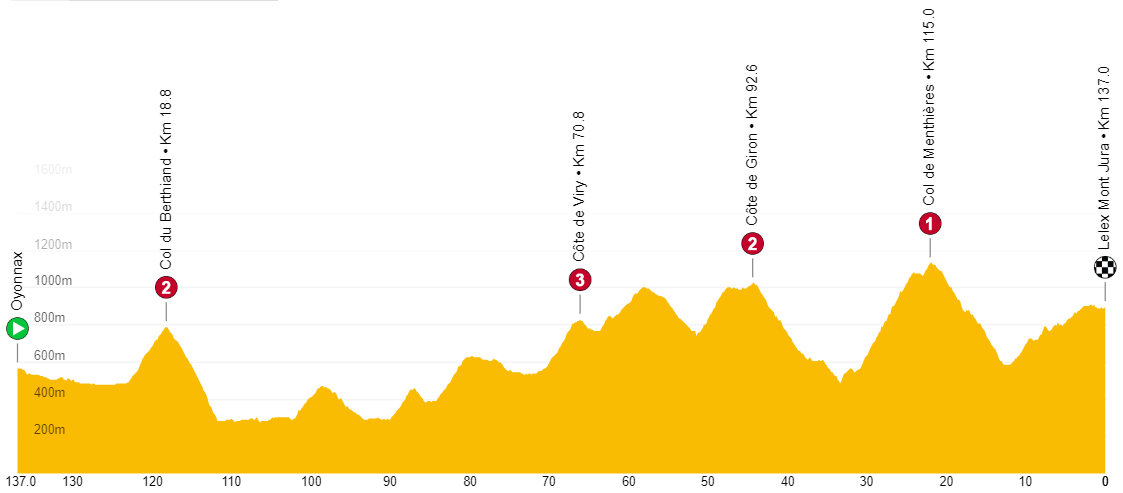3ª etapa. Miércoles 2 agosto: Oyonnax (12:20)-Lélex Monts-Jura (15:45), 137 kms