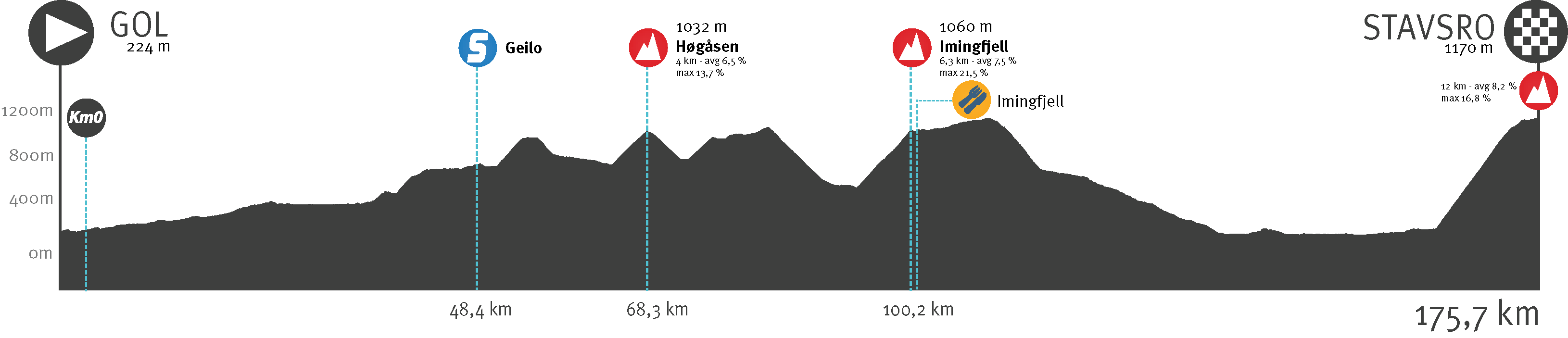 3ª: Jueves 26 mayo. Gol – Stavsro/Gaustatoppen, 175,7 km