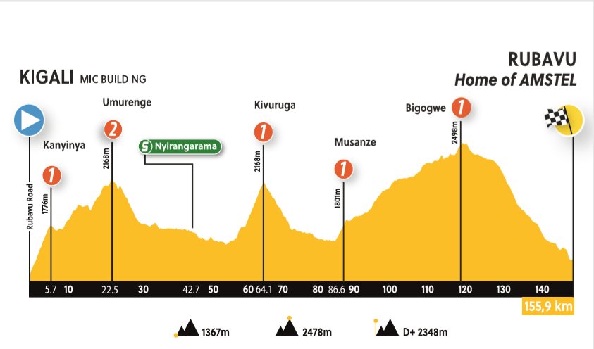 A tan solo 15 kilómetros de la meta, la diferencia en favor de Hayter y Stockman era superior a los 2 minutos y medio, pero el trabajo de los hombres del pelotón hizo que cayera en picado. Ambos comenzaron la última vuelta con 40 segundos de renta, pero acabaron siendo neutralizados en el kilómetro final, permitiendo al francés Sandy Dujardin alzar los brazos en meta como vencedor del esprint del grupo. La próxima jornada, entre Kigali y Rubavu, hará una mayor selección entre los favoritos al triunfo final, ya que los corredores deberán ascender cinco pasos de montaña.