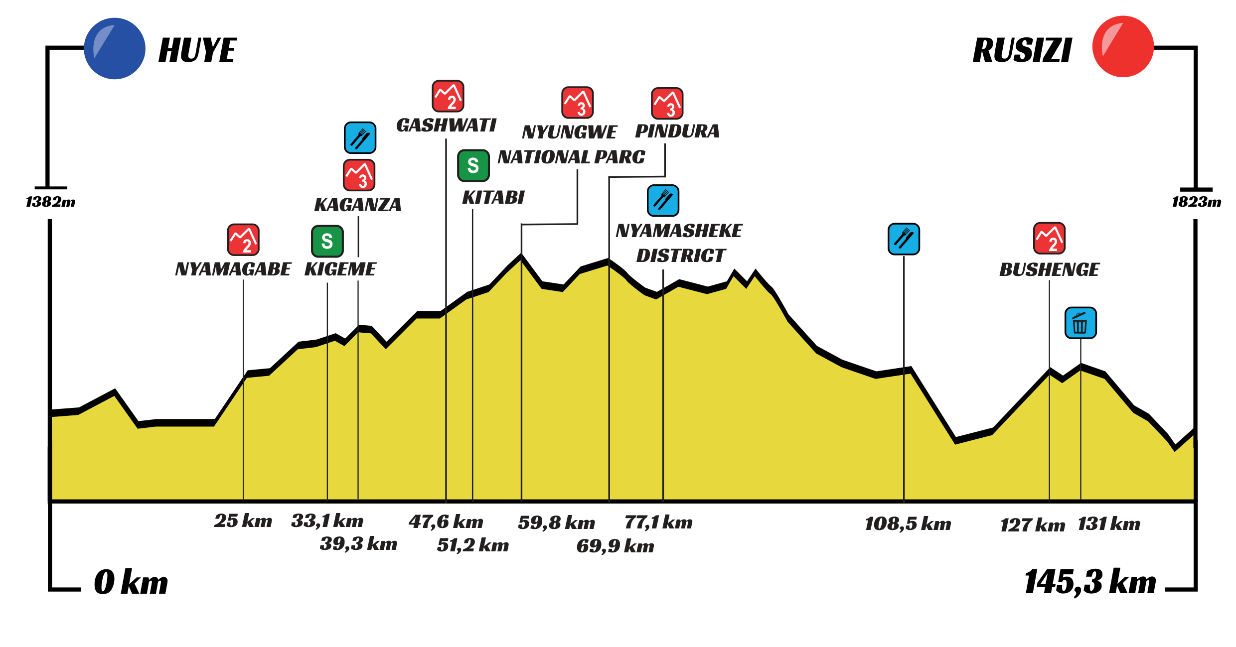 2ª: Lunes 23 febrero. Nyamata (11:00)-Huye (14:25), 135 km