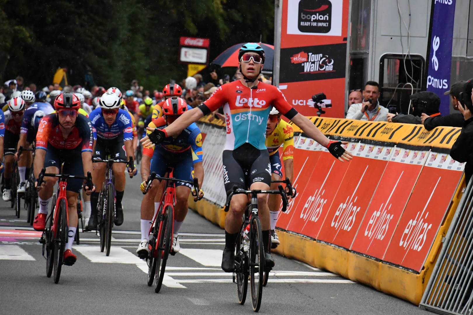 Arnaud De Lie: «Estoy muy feliz con esta victoria, después de dos meses sin ganar, extrañaba este sentimiento. Es aún más agradable ganar cerca de casa en el Tour de Valonia. Después de un período difícil con la caída en los 4 Días de Dunkerque, esto me da mucha satisfacción. Los chicos lo hicieron perfectamente hoy. Y ganar en una carrera en la que mi hermano Axel hizo tanto trabajo, la hace aún más especial. Al contrario que ayer, no queríamos tomar la responsabilidad. Pero debido a los fuertes vientos, cogimos a los fugados bastante rápido y luego se trató de preparar el sprint. Cedric Beullens fue mi último hombre en el sprint y lo hizo a la perfección. Seguí su ruedas y confié en mi velocidad. Mañana es una nueva oportunidad, pero nuevamente un recorrido difícil. Defender el maillot de líder hasta el final será muy complicado con la contrarreloj larga, pero si sigo en cabeza, por supuesto que lo daré todo.