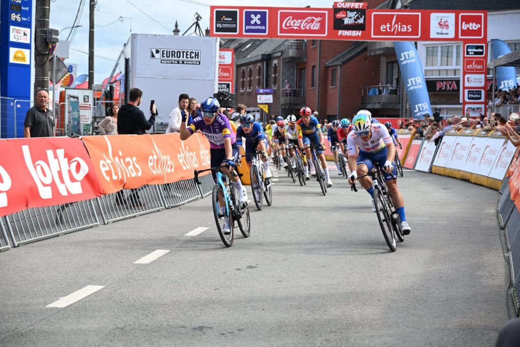 Diez meses después Corbin Strong tuvo la habilidad para volver a levantar los brazos. No lo hacía desde el pasado mes de septiembre en el Tour de Luxemburgo en un día en el que superó a Søren Kragh Andersen en una llegada muy parecida a la de hoy en el Tour de Valonia. Esta vez sus grandes rivales fueron Emilien Jeannière (2º) y Paul Penhoët (3º). La presencia del velocista francés de Groupama fue un gran indicativo para entender cómo tantos corredores llegaron con opciones a la meta, a pesar de lo que picaba la carretera hacia arriba. Aunque el ritmo no tan exigente fue la clave de ello.