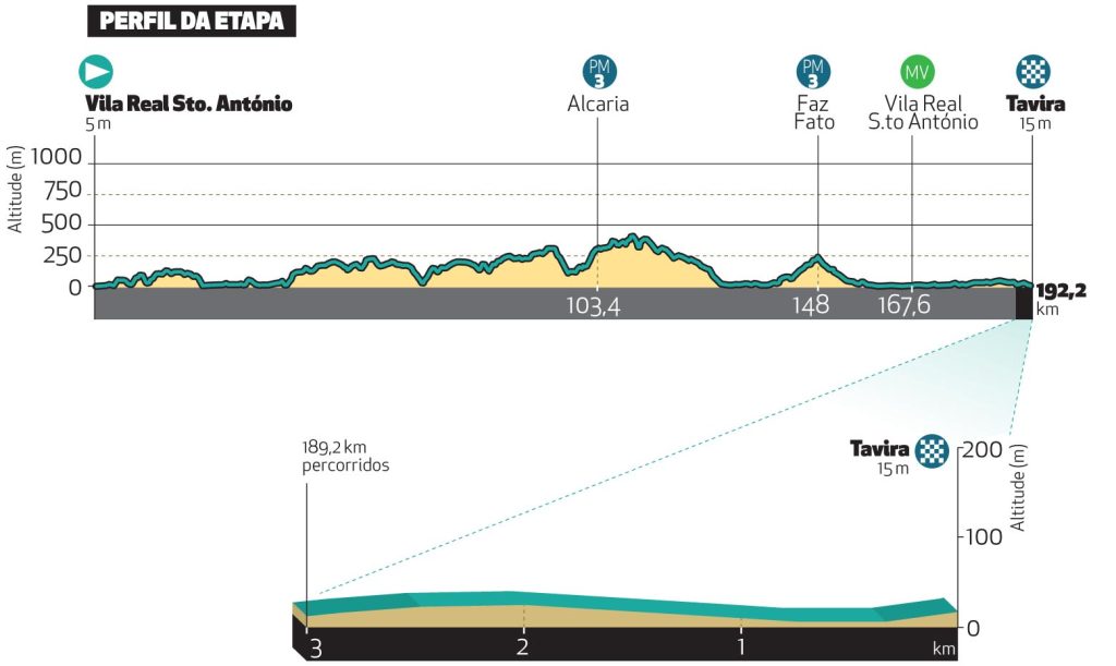 3ª: Viernes 16 febrero. Vila Real de Santo António (13:00)-Tavira (17:30). 192,2 kilómetros
