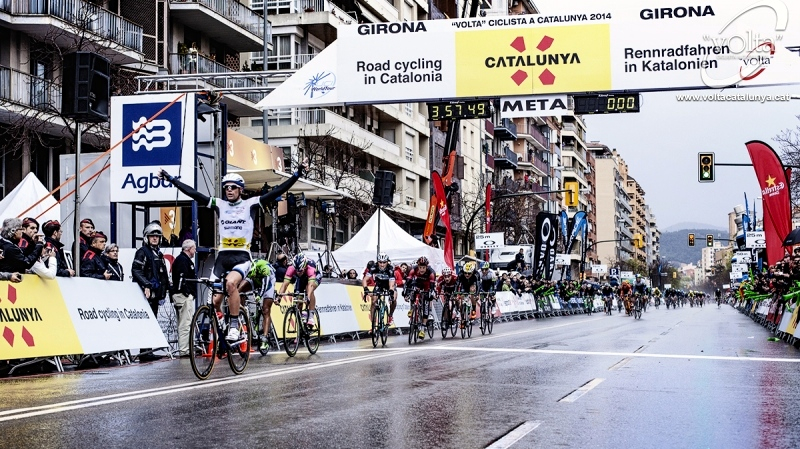 Un doblete en Catalunya que ha sido triplete en los tres últimos días de competición -tras la Clásica Handzame– de un Mezgec que no ha tenido rival en las llegadas masivas ante la ausencia de sus compañeros Kittel y/o Degenkolb y otros ases de la velocidad que ha rentabilizado a la perfección. Si en Calella el margen fue más estrecho ante el australiano Howard, en Girona -la ciudad donde vive el dorsal 1 Dan Martin– la diferencia fue más notable, dejando mucho más alejados a Ferrari y Ratto, cuyos últimos podios fueron en Catalunya, victoria de etapa de la Vuelta a España 2013 entre Bagà y Andorra -también bajo el diluvio- y 2º en la etapa de la Volta 13 entre Girona y Banyoles, donde empieza la etapa de mañana. Le va esta comunidad.