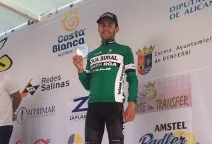 Carlos Cobos (Caja Rural) ha sido el mejor de la fuga que llegó a buen término a Ibi -ciudad del profesional Rubén Plaza-, sede de la primera y penúltima etapa de la Vuelta a Alicante elite y sub-23, marcada por el viento y la dureza del perfil. de esta forma se convierte en el primer líder de la ronda valenciana a falta de la jornada dominical.