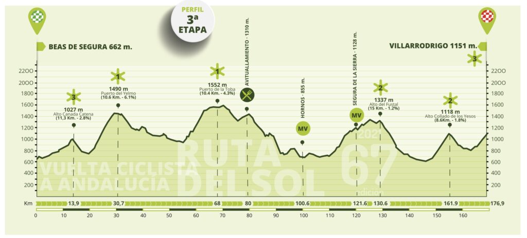 Una jornada protagonizada por los fugados Timo Roosen (Jumbo), Álvaro Cuadros (Caja Rural), Antonio Jesús Soto (Euskaltel), Aaron Van Poucke (Sport Vlaanderen), Tobias Bayer (Alpecin) y Rui Oliveira (UAE) que dispusieron de un buen margen por el grupo controlado por Movistar sobre el escarpado terreno cordobés y jiennense.
