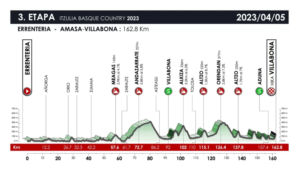 3ª: Miércoles 5 de abril. Errenteria (13:39)-Villabona (17:29), 162,8 kms