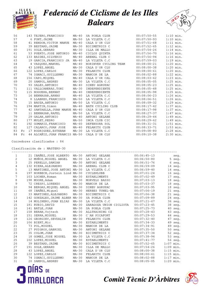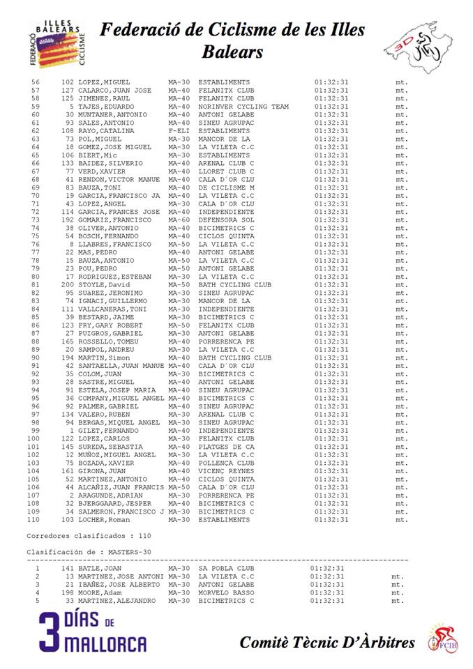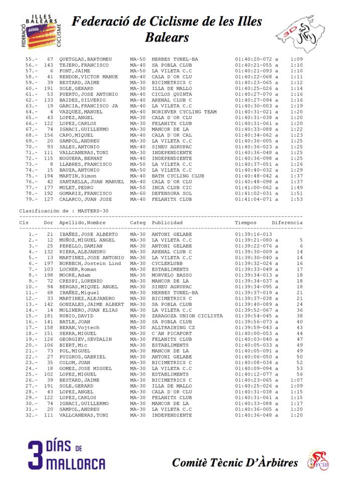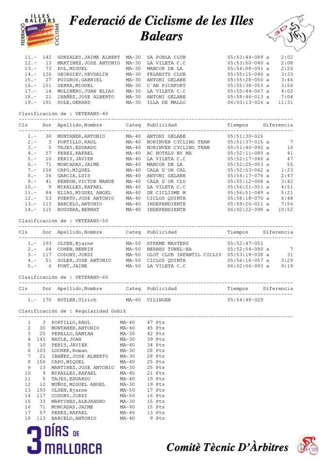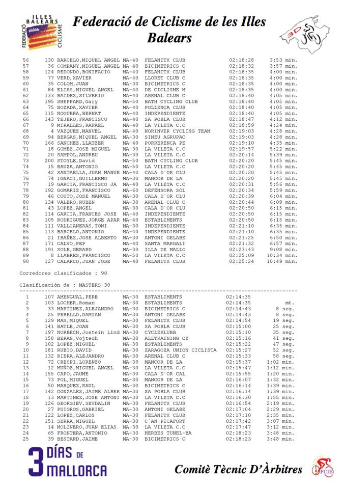 Sin embargo, en el recorrido más exigente de los 3 Dies de Mallorca, el más largo de la ronda para másters y féminas, de 91 kilómetros, se superaron tres puertos de montaña: el Alto de Sa Bastida, Alto de Gracia y el final de la etapa, en el Alto de Montision.