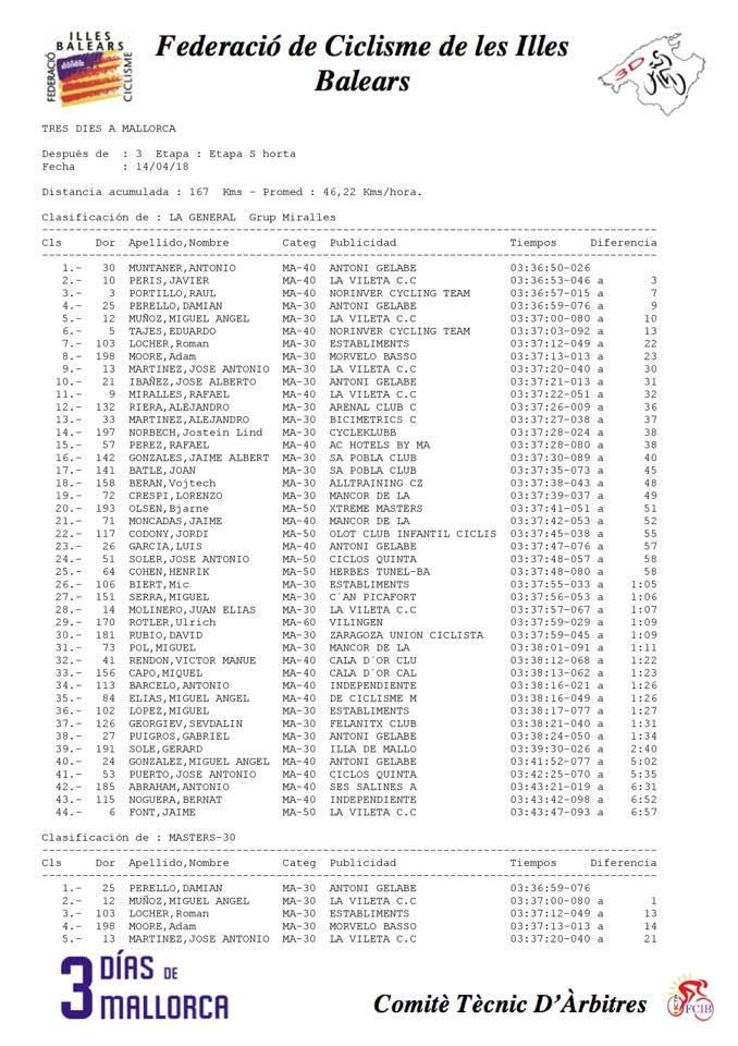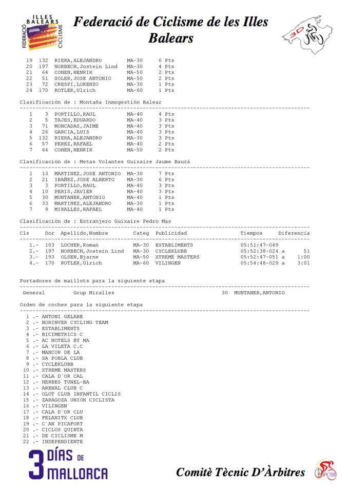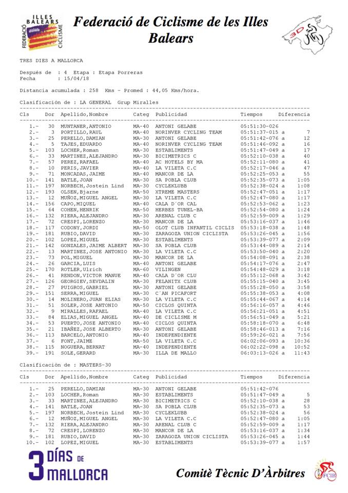 A lo largo de la cuarta etapa de la ronda, que organiza la Unió Ciclista Blahi de Campos, Muntaner centró buena parte de la defensa de su maillot amarillo de líder en seguir la rueda de Raúl Portillo, quien afrontó la carrera definitiva en tercera posición, con un retraso de apenas 7 segundos.