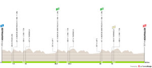 Los corredores se pusieron en marcha para esta tercera etapa en un recorrido de 166,9 kilómetros entre la ciudad de Flandes Oriental belga de Aalter, el irlandés ya logró ganar en Hulst y Ardooie y buscaba otra muesca más para completar su genuino hat trick. Laurens De Vreese, Viacheslav Kuznetsov, Jan-Willem van Schip y Aaron Verwilst formaron el primer viaje en fuga y pronto su ventaja se elevaría a los dos minutos. Infortunio para Kuznetsov que tuvo un pinchazo, por lo que tuvo que cambiar de bicicleta y el ruso de Katusha-Alpecin fue inmediatamente alcanzado por el grupo principal y solamente serían tres los que permanecerían en cabeza.
