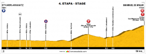 Mañana, etapa reina de la Emakumeen con sólo 58 kilómetros entre Etxarri Aranatz y San Miguel de Aralar, con la subida a Zuarrarrate (km 35, 6,3 kms al 5%) antes del final, con 13,2 kms de ascensión al 4,4%.