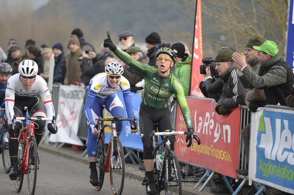 La Estrella de Bessèges no la olvidará Bryan Coquard. Ayer se le dio como ganador de la gélida jornada cuando en realidad se fue el suelo en la caída masiva del kilómetro final. Anoche anunciaron varios medios franceses su abandono, pero hoy se ha presentado en la línea de salida y tras 152 kilómetros de recorrido con tres puertos de 1ª categoría, se ha apuntado la victoria ante el italiano Nizzolo y el belga Theuns, que pasa a ser el nuevo líder en detrimento de su compatriota Boeckmans.