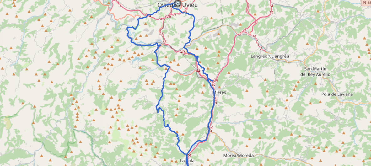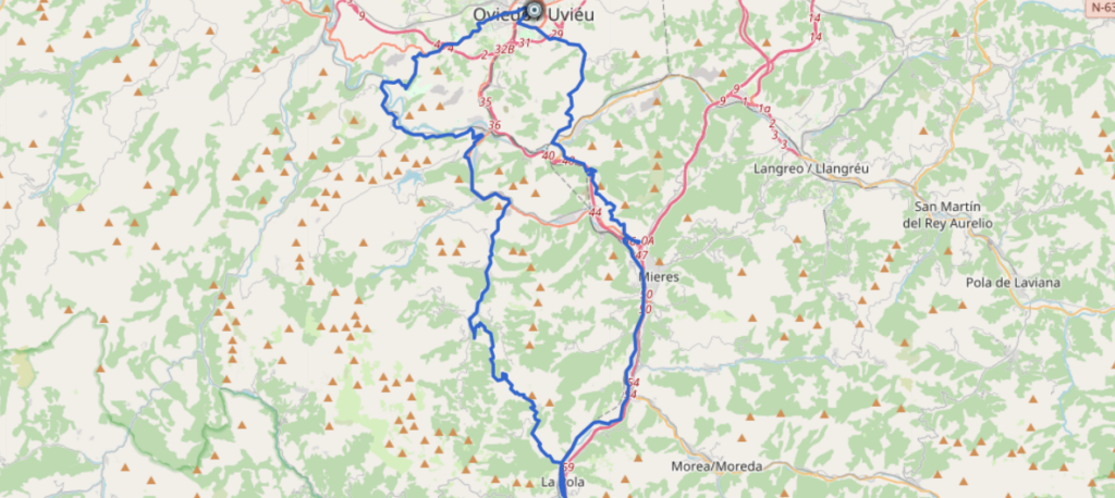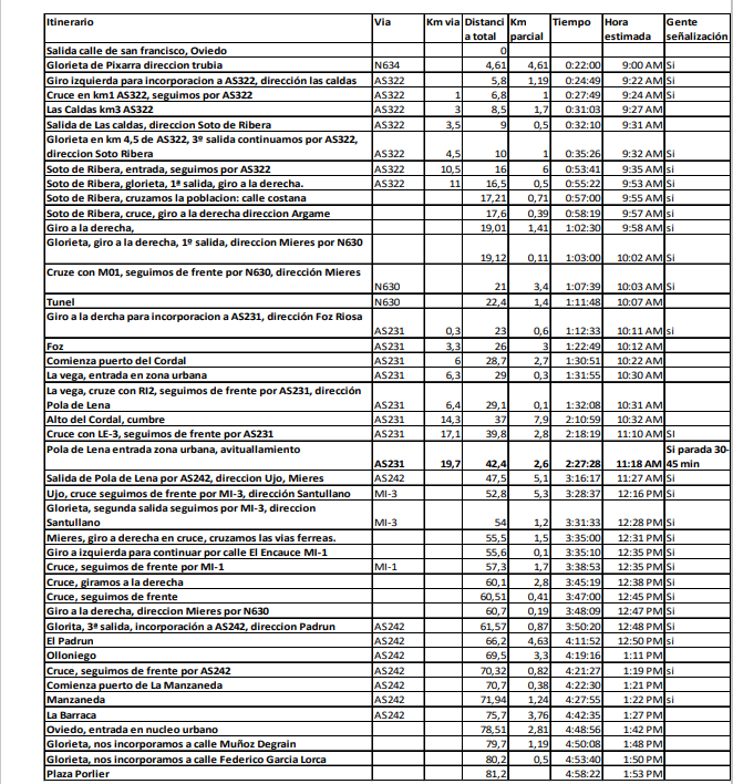 El recorrido, de 82km con un desnivel positivo de 1.500m, atravesará los siguientes puntos: Oviedo-Soto de Ribera-La Vega-Alto del Cordal-Pola de Lena-Ujo-Mieres-Rebollada-Alto del Padrun-Olloniego-Manzaneda-San Esteban-Oviedo.