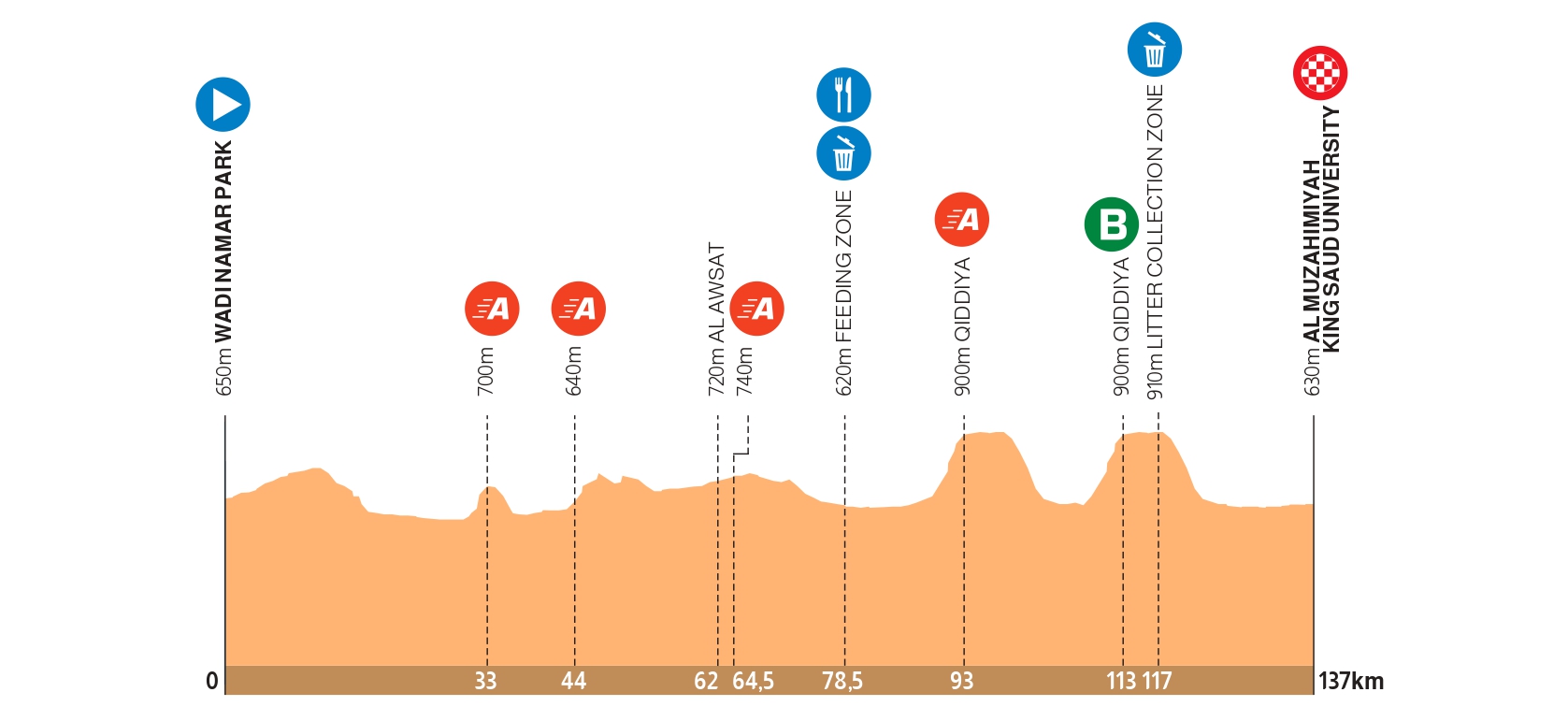 Batmunkh, Ellas, Holler, Kangangi y Sutter conformaron la primera fuga del día que fue remachada sorprendentemente por el propio Rui Costa a 45 kilómetros. Le siguieron nuevos intentos con los españoles Fuentes, Nicolau y Madrazo que fue líder de la etapa junto al etíope Hailemichael. Neutralizado el dúo vino el segundo intento del excampeón del mundo, pero Bahrain y NTT no le dio bula alguna.