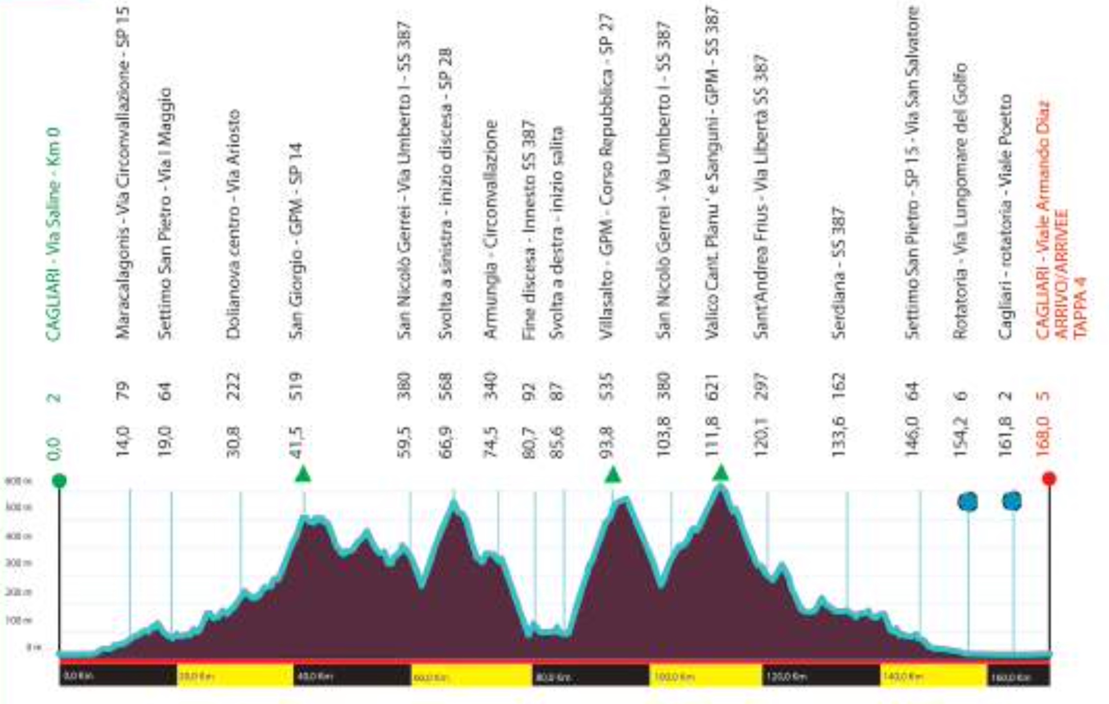Antes del kilómetro 10 ya se había formado la escapada del día. Ibai Azurmendi (Euskaltel-Euskadi) y Arturo Grávalos (Eolo-Kometa), junto a Igor Boev (Gazprom), Cédric Beullens (SVB) y Paul Wright (MG.K). Los cinco disfrutaron de una ventaja superior a los cinco minutos, que se fueron diluyendo conforme se acercaron a las dificultades montañosas de la jornada, la última de ellas, el Passo Gena e Bogai de 2ª categoría, a 70 kilómetros de meta.