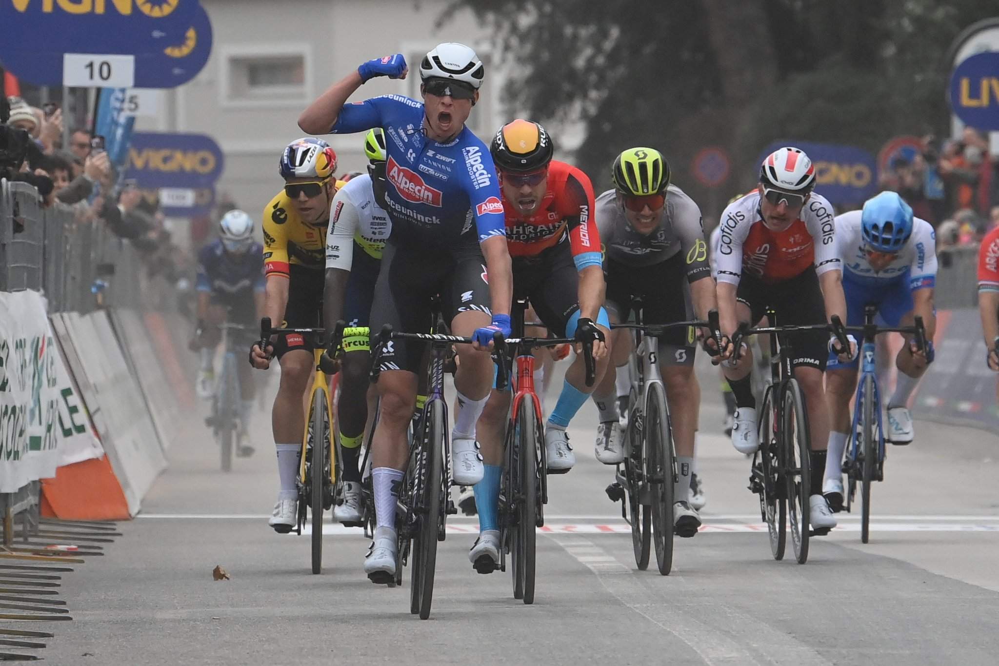 Han tenido que pasar casi tres meses para vivir el estreno del Alpecin belga en la temporada 2023, el último equipo del World Tour en conseguirlo. Lanzado por un magistral Mathieu Van der Poel su compañero Jasper Philipsen pudo por fin abrir su lata particular al sprint sobre el alemán Phil Bauhaus (Bahrain) y el eritreo Biniam Girmay (Intermarché). El belga de 25 años y 24 victorias ya avisó en la víspera siendo solo superado por el campeón de Europa, Fabio Jakobsen, y en esta ocasión no perdonó. Un éxito que acaba con la presión y la ansiedad que reporta siempre ver como pasan las carreras sin podio alguno.