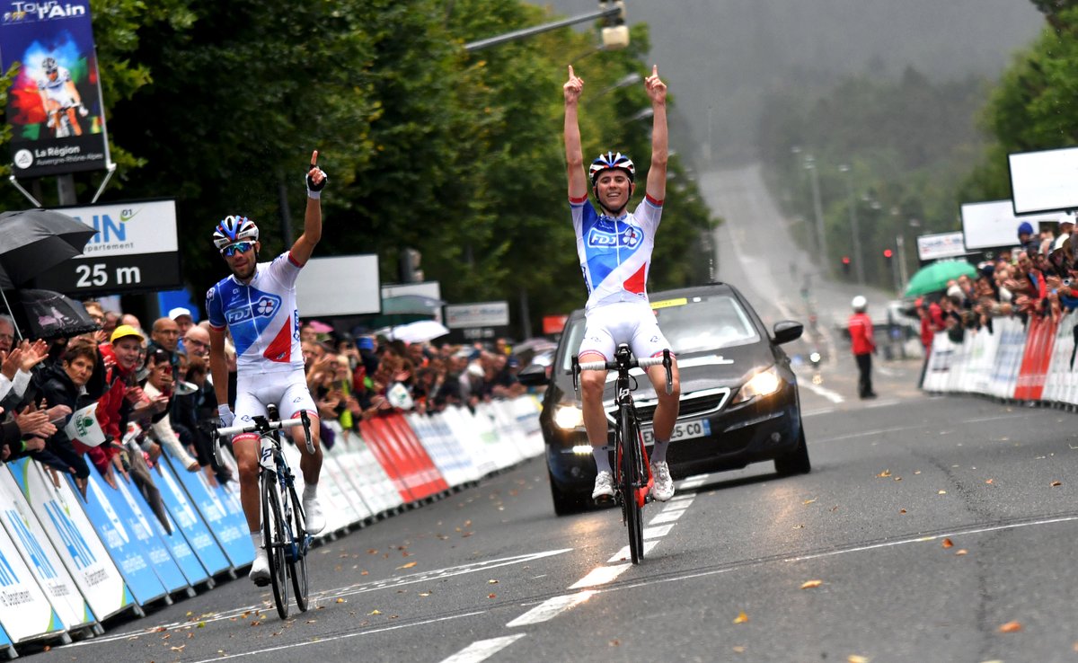 Pinot, a la izquierda, y Gaudu, a la derecha, celebrando el triunfo © Tour de l’Ain