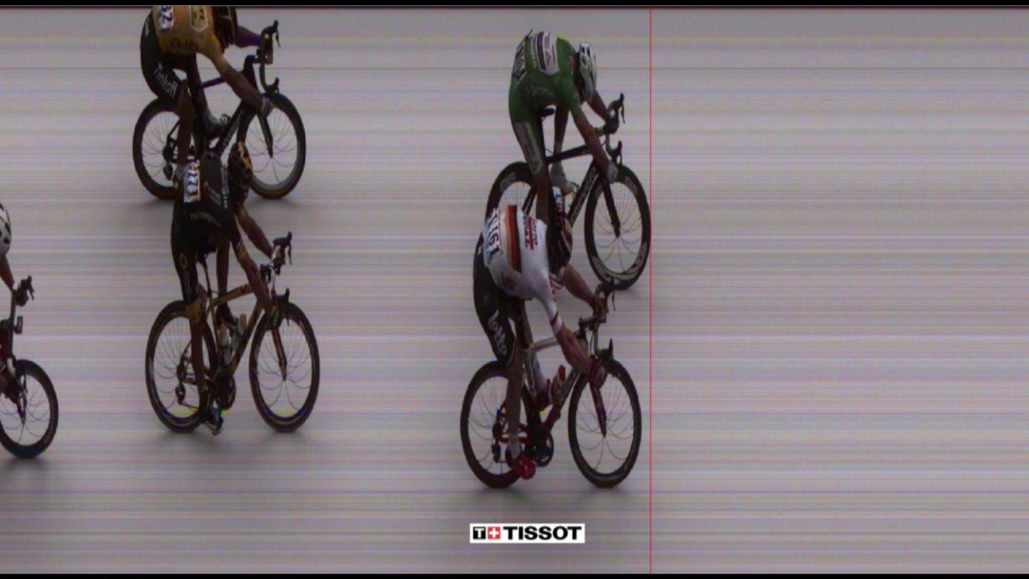Y ya en la recta final, que es a lo que quedó reducida la jornada más larga hasta hoy, llegó el sprint de libro. Calle ancha y todos bien colocados. Hasta Sagan, con esa manía tan suya de rendir el mayor de los tributos al maillot que porta, se metió en la fiesta. Y se lanzó Greipel con Cavendish, de verde prestado, soldado a su rueda. Y llegaron los dos a la vez a pisar la meta. Y levantó un brazo, tímido, el alemán. Y la cámara súperlenta daba a entender que, por medio tubular, había ganado Cavendish. Y los jueces dudaron. Y, como si la cosa no llevase ya retraso suficiente, nos hicieron esperar unos minutos eternos hasta que los jueces desataron la locura en el corrillo que se había formado alrededor del hombre de la Isla de Man. Segundo triunfo para él que, de manera absolutamente sorprendente, se sitúa ya como el gran velocista de un Tour al que, a priori, llegaba casi como un convidado de piedra.