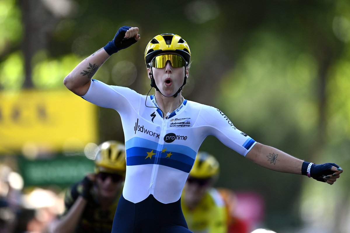 La atacante belga sólo fue alcanzada a falta de 200 metros. Las velocistas volaron por delante de ella, con Lotte Kopecky lanzando a Lorena Wiebes (SD Worx) a la victoria, por delante de Marianne Vos. La propia Kopecky completó el podio, consolidando su condición de líder de la carrera.