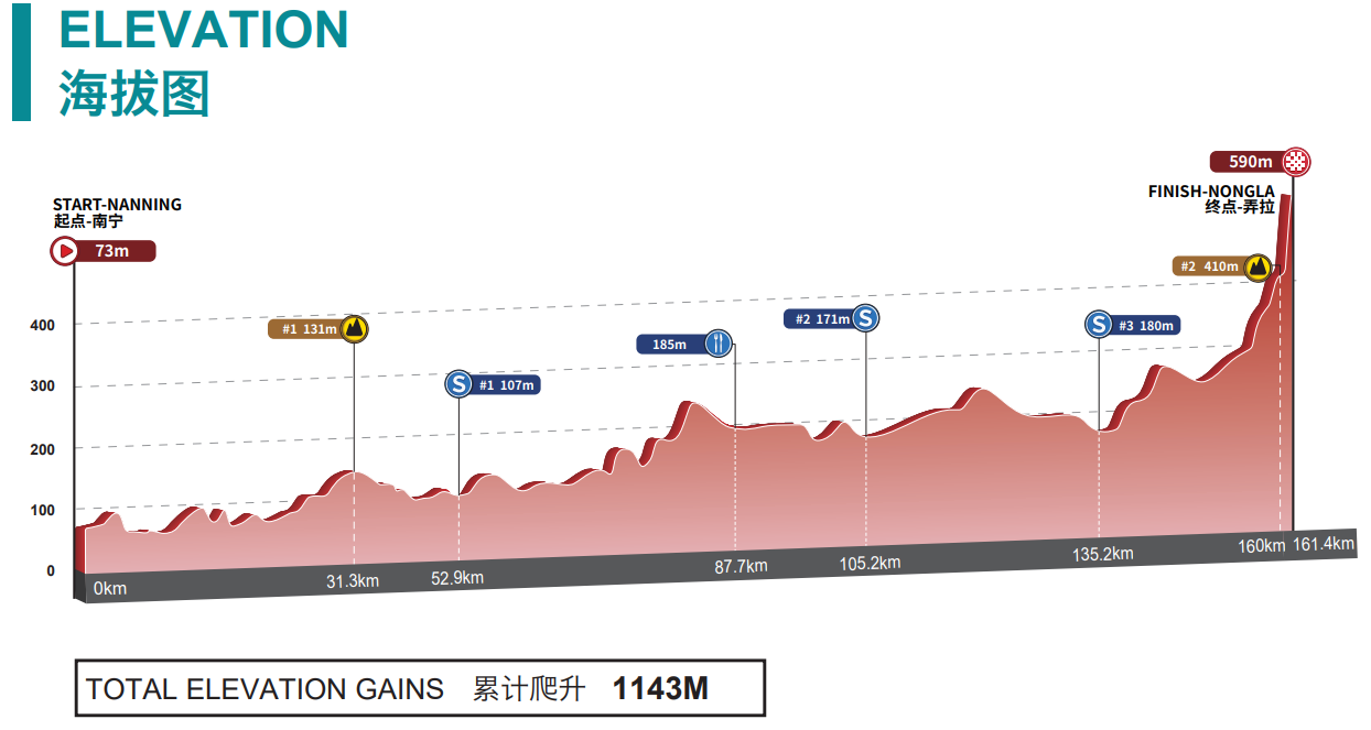 El domingo será el turno para los hombres de la general en la Vuelta a Guangxi. La cuarta etapa, de 161.4 kilómetros entre Nanning y Nongla, termina en alto con una subida de 2.5km al 7.2% de pendiente media.