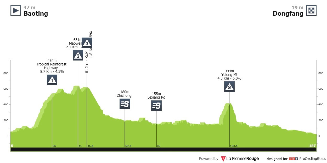 3ª: Miércoles 9 abril. Lingshui-Baoting, 212,6 km