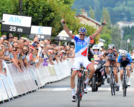 El francés Alexandre Geniez (FDJ) se impuso en la tercera etapa del Tour de l’Ain (2.1) celebrada entre Lagnieu y Bellignat sobre 145 y es el nuevo líder de la general sucediendo a su excompañero y eompatriota Nacer Bouhanni, ganador de las dos anteriores jornadas. Geniez fue el más rapido de un pequeño grupo destacado por delante de Florian Vachon (Bretagne), Theo Vipere (Auber 93) y Pierre Latour (AG2R).