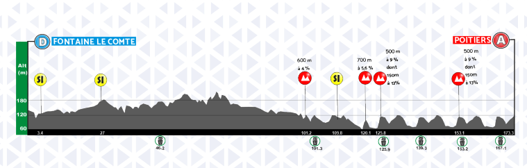 4ª: Viernes 23 agosto. Fontaine le Comte (12:45)-Poitiers (16:35), 173,3 kms