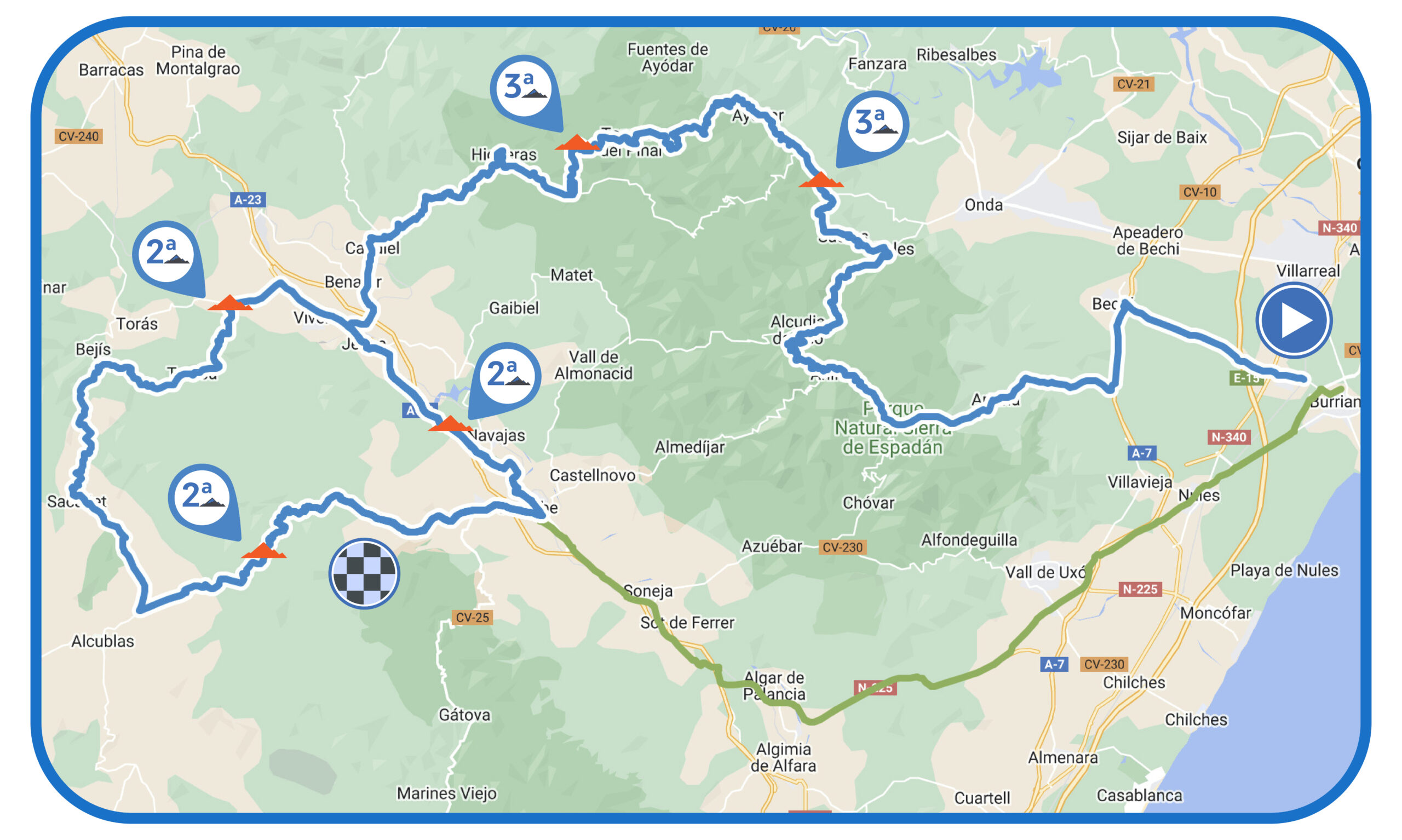 Del resto de la etapa, decepcionó en cierto modo la dura subida al Garbí, en la que Craddock buscó la sorpresa en la fuga y el pelotón se lo tomó con más calma de lo esperado, tal vez pensando en la jornada reina que tendrá lugar este sábado con el final en la Cueva Santa de Altura. El ritmo de Trek y de UAE solo sirvió para dejar atrás a algunos de los velocistas como Girmay o Kooij, pero coronaron muchos ciclistas el momento más complicado de la jornada.