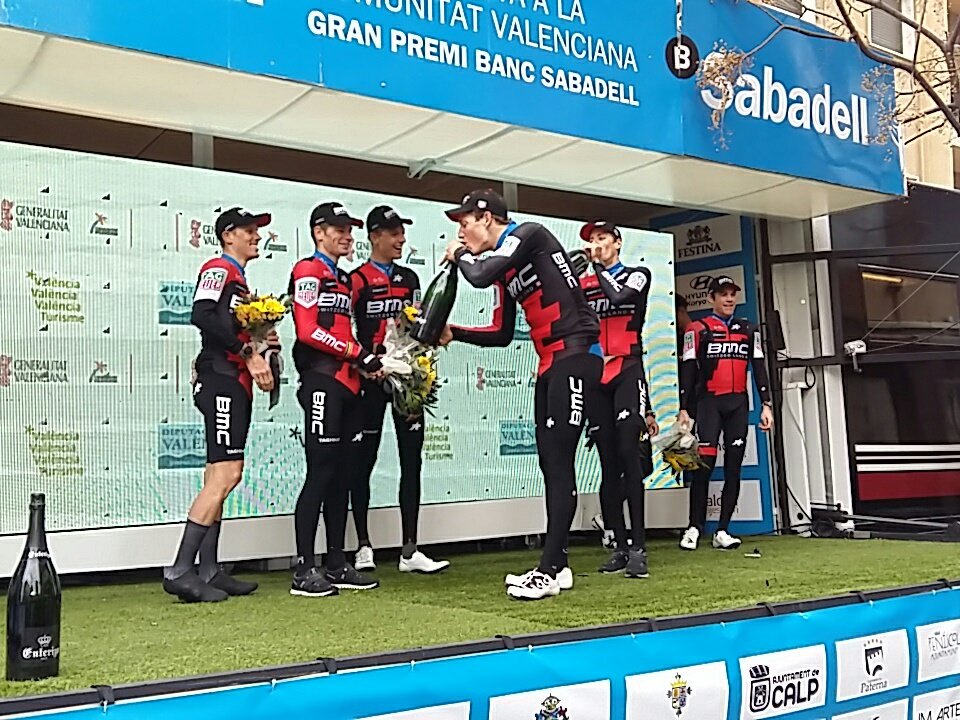 BMC ha ganado una de las etapas más estrambóticas disputadas en los últimos tiempos. Y es que el Jurado Técnico y organizadores -bajo la presión de ciertos equipos como Sky y/o el Movistar del líder Valverde– decidieron que se disputara la contrarreloj por equipos -recortada 7 kilómetros por la negación del consistorio de Teulada-, pero que no contaran los tiempos para la clasificación general por el clima antes de la jornada que luego mejoró.