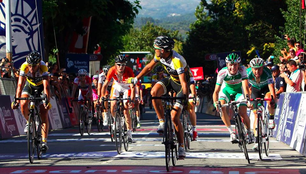 El ciclista español Delio Fernández (OFM) venció hoy en la tercera etapa de la Vuelta a Portugal al adelantarse en el sprint y en el último momento a su compañero de equipo y compatriota Alejandro Marque, que terminó segundo.