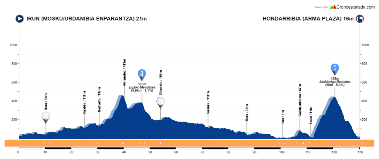 1ª: Jueves 4 mayo. Irún – Hondarribia (130,4 km)