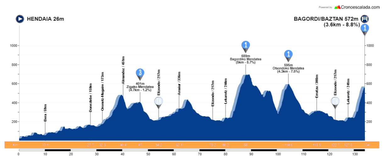2ª: Viernes 5 mayo. Hendaya – Bagordi Batzan (129,1 km)