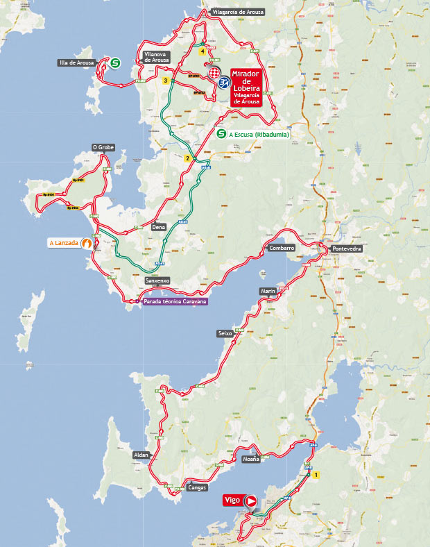 Este lunes 26 de agosto tiene lugar la tercera etapa de la Vuelta a España entre Vigo y el Mirador de Lobeira en Vilagarcía de Arousa sobre una distancia de 184,8 kilómetros, , que acabará en el segundo final en alto consecutivo tras el del Alto do Monte da Groba en Baiona.