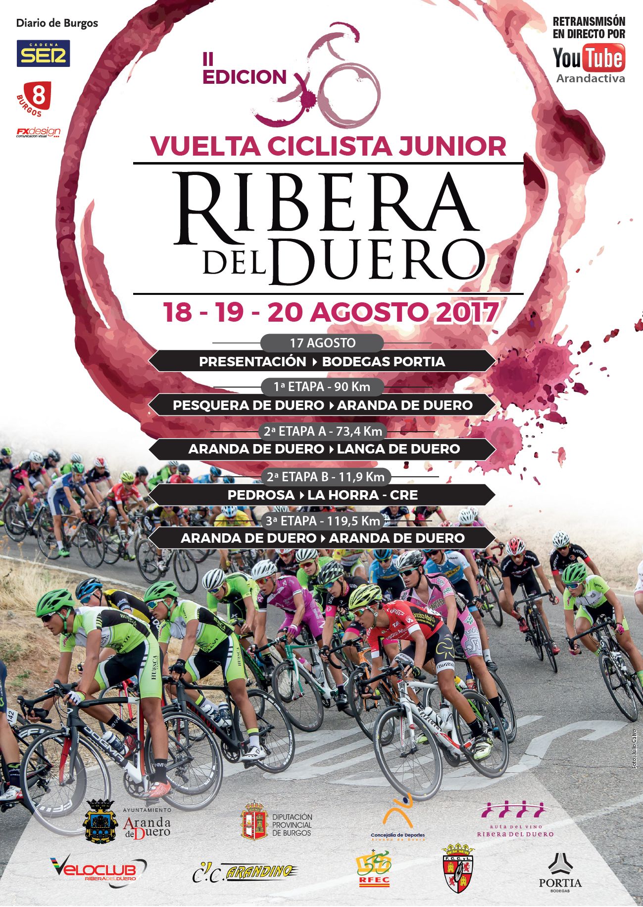 La segunda edición de la Vuelta a la Ribera del Duero Júnior se disputa del 18 al 20 de agosto con un recorrido perfecto para la categoría. Tres etapas, con la segunda con dos sectores, forman el menú de esta cita deportiva que, después del éxito del año pasado, en este 2017 continúa con su apuesta por el ciclismo de base. Una competición que, además, cuenta con el hecho especial de tener en Óscar Freire a su padrino. Freire fue campeón del mundo de ciclismo en carretera en tres ocasiones.