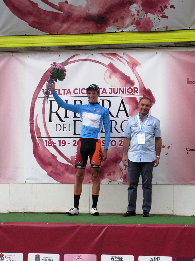 El líder de la Vuelta Ribera del Duero junior, Timo De Jong, se ha vuelto a imponer hoy y lo ha hecho en el primer sector de la segunda jornada disputada esta mañana. A partir de las 17:30 horas tendrá lugar la contrarreloj por equipos. El primer conjunto en salir será la selección española femenina.