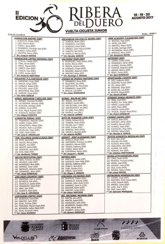 Se ha disputado la primera etapa de la Vuelta Ribera del Duero con victoria del belga Timo De Jong (Acrog). El español Santiago Alcoba (MMR Academy) ha finalizado segundo, mientras que tercero ha sido el mexicano Fernando Islas (Cartagena Esetec).