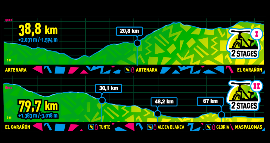 Mañana comenzarán a rodar los primeros participantes de esta edición, serán 157 corredores los que compitan en la modalidad Two Stages, con línea de salida en el municipio de Artenara. La primera etapa serán 40 kilómetros y 2.031 metros de desnivel positivo, con línea de meta en El Garañón. El domingo será la segunda etapa hasta Maspalomas, unos 79,7 kilómetros y 1.383 metros de desnivel positivo. Desde el Garañón los bikers continuarán a través de Tunte, Aldea Blanca, San Agustín hasta finalizar en Expomeloneras.