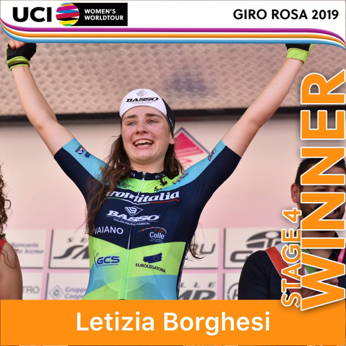 Una italiana de 20 años, Letizia Borghesi (Aromitalia) se ha estrenado en el Giro Rosa rompiendo el monopolio de la holandesa Marianne Vos. La local fue una de las tres escapadas del día junto a sus compatriotas Chiara Perini (Bepink) y Nadia Quagliotto (Alé Cipollini), que lograron llegar hasta el final y que saltaron a falta de 45 kilómetros del final, después de un intento de Aude Biannic, la francesa del Movistar.