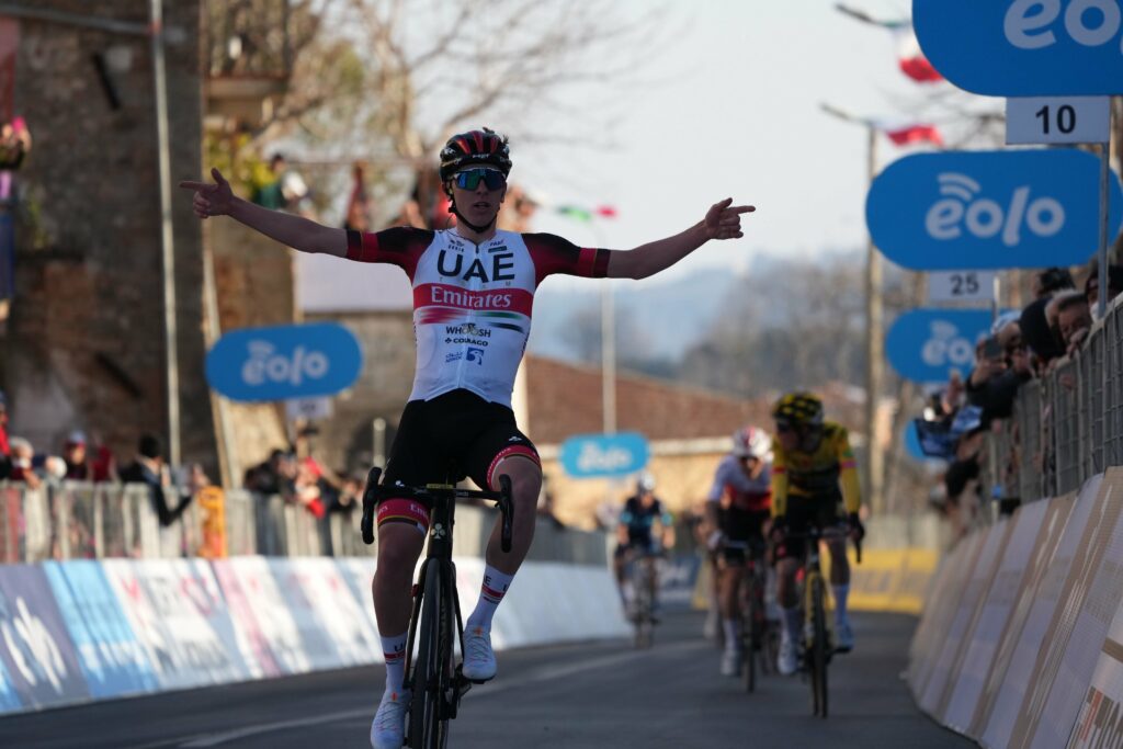 Sin un equipo dominador, la subida se convirtió en un festival de ataques. Todos los líderes lo intentaron, pero ninguno abrió hueco. Porte, Thomas, Evenepoel, Soler, Kelderman y Miguel Ángel López lo probaron. Pero ni el terreno ni los ataques eran suficientemente duros para coger una ligera ventaja. El que sí lo consiguió fue Tadej Pogacar. Una vez aguantadas todas las embestidas de sus contrincantes, lanzó su ataque. Sin mirar atrás y con una buena cadencia de pedaleo se marchó a falta de 600 metros en busca de su primera victoria en esta edición de Tirreno Adriático. El esloveno se llevó la victoria y le arrebató el liderato a Filippo Ganna.